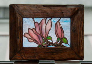 ![]() N.yさんが、捜していきたフレームで木蓮のパネルを作りました。 |