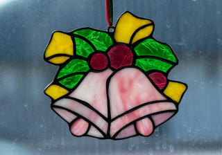 K.sさんが制作したクリスマスアイテムその5。お気に入りの渋いブルーグレーのガラスを使いたくて。