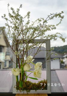 Jimmy FLORAL SCHOOLアドバンスコース2月です。テーマは春を描くフレームアレンジ。